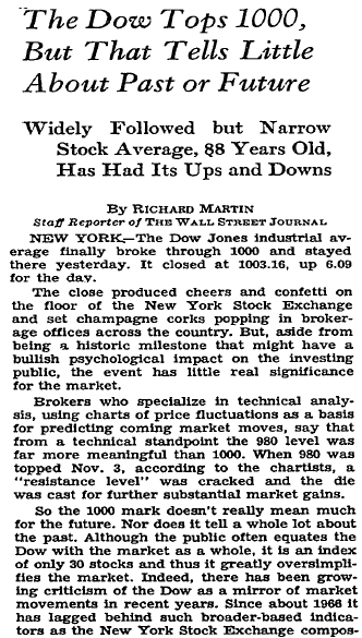 Headline: The Dow Tops 1000, But That Tells Little About Past or Future
