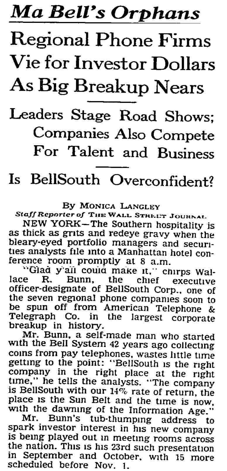 Ma Bell's Orphans | The Wall Street Journal, Framed Article Reprint, Oct. 19, 1983